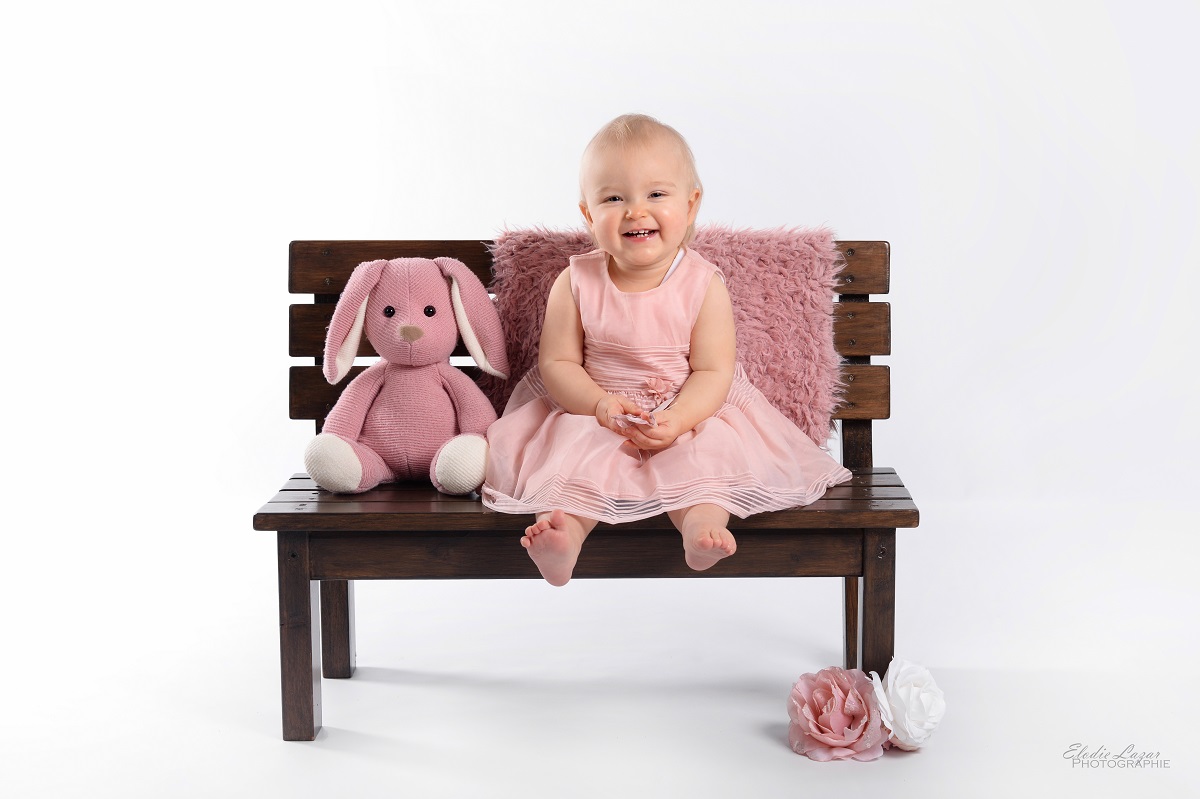Nous commencerons par quelques photos sur fond neutre (blanc ou rose) dans la tenue de votre choix afin d’obtenir la photo « officielle » de ses 12 mois.